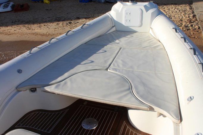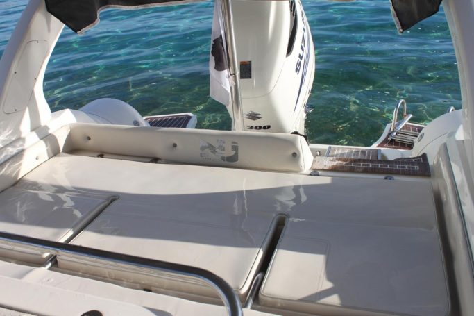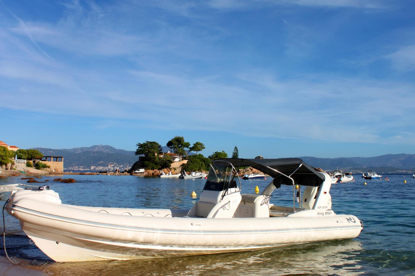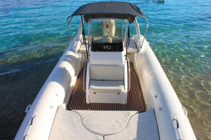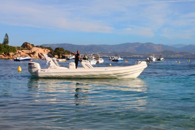 Nous vous proposons ce Semi-rigide pour une belle sortie en mer. C'est un Nuova Jolly NJ 850, référence en matière de semi-rigide. Il est équipé d'un moteur de 300 chevaux suzuki 4 temps, permettant d'emmener jusqu'à 14 personnes en navigation sans encombres. A bord, vous retrouverez un grand taud de soleil, un grand bain de soleil, une douche de pont... C'est un bateau idéal pour profiter des belles journées ensoleillées au large des côtes Corse.